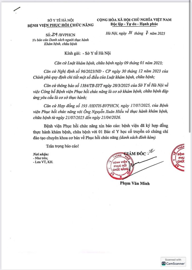 Trang chủ » Tin tức » Báo cáo người thực hành khám chữa bệnh gửi Sở Y Tế Báo cáo người thực hành khám chữa bệnh gửi Sở Y Tế Đăng vào ngày 21/07/2025 lúc: 16:45 516 lượt xem Chi tiết báo cáo: Báo cáo người thực hành khám chữa bệnh gửi SYT, CamScanner 2025-07-21 16.44 Có thể bạn quan tâm: THƯ MỜI QUAN TÂM GÓI THẦU TƯ VẤN LẬP E-HSMT, ĐÁNH GIÁ E-HSDT THUỘC DỰ TOÁN MUA SẮM TRANG THIẾT BỊ Y TẾ NĂM 2024 (19/11/2024) Công Đoàn Bệnh viện Phục hồi chức năng Hà Nội tổ chức sinh nhật tháng 3 cho các đoàn viên (05/03/2025) Chăm sóc sức khỏe cho người cao tuổi mùa nắng nóng (25/07/2024) Lịch tuần từ 12/05 đến 18/05/2025 (13/05/2025) Lịch tuần từ 21/07 đến 27/07/2025 (21/07/2025) QUYẾT ĐỊNH 101/QĐ-BVPHCN QUY ĐỊNH GIÁ DỊCH VỤ KHÁM BỆNH, CHỮA BỆNH BẢO HIỂM Y TẾ (28/10/2024) THƯ MỜI YÊU CẦU TƯ VẤN KHẢO SÁT LẬP DỰ TOÁN MUA SẮM PHẦN MỀM BỆNH ÁN ĐIỆN TỬ – THIẾT BỊ HẠ TẦNG CÔNG NGHỆ THÔNG TIN (17/04/2025) THƯ MỜI BÁO GIÁ VÀ HỒ SƠ NĂNG LỰC DỊCH VỤ TƯ VẤN LẬP E-HSMT, BÁO CÁO ĐÁNH GIÁ E-HSDT CHO DỰ TOÁN MUA SẮM THỰC PHẨM NĂM 2025 CHO CÁC CHÁU KHUYẾT TẬT TẠI LÀNG HÒA BÌNH THANH XUÂN (07/02/2025) Giới thiệu chung (06/03/2024) Lịch tuần từ 02/9 đến 08/09/2024 (05/09/2024) Thư mời tham gia Gói thầu Mua sắm phim X-quang (24/03/2025) Đoàn chuyên gia aphp (pháp) thăm và làm việc với bệnh viện phục hồi chức năng hà nội (26/09/2023) Thư mời quan tâm Gói đấu thầu sửa chữa Máy biến áp và thay cáp hạ thế, bộ cầu trì (05/03/2025) THƯ MỜI BÁO GIÁ DỊCH VỤ TƯ VẤN LẬP E-HSMT, ĐÁNH GIÁ E-HSDT DỰ TOÁN MUA SẮM ” TRANG PHỤC Y TẾ VÀ ĐỒ VẢI PHỤC VỤ BỆNH NHÂN NĂM 2024″ (20/06/2024) Gia tăng tình trạng cong vẹo cột sống tuổi học đường (18/06/2024)