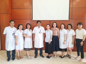 Tới dự buổi lễ tiếp nhận về phía bệnh viện có PGS.TS Phạm Văn Minh – Giám đốc bệnh viện; BSCKII. Nguyễn Thị VIệt Hà – Phó Giám đốc bệnh viện và các Trưởng, phó khoa phòng bệnh viện. Về phía JICA tại Việt Nam có bà Unaka Keiko- Điều phối viên chương trình, bà Fukuzaki Kiyoko – Tình nguyện viên phái cử, chuyên ngành Ngôn ngữ trị liệu và bà Vũ Thị Minh Hà – cán bộ chương trình phái cử tình nguyên viên JICA.