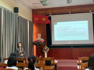 Tại buổi tập huấn, Giảng viên BSCKII Nguyễn Thị Việt Hà – Phó Giám đốc  – Chủ tích Công đoàn bện viện hướng dẫn các nội dung Quy tắc ứng xử của viên chức, người lao động làm việc tại các cơ sở y tế theo Thông tư số 07/2014/TT-BYT; Quyết định số 522/QĐ-UBND ngày 20 tháng 03 năm 2017 về việc ban hành “Quy tắc ứng xử của CBCCVC, người lao động trong các cơ quan thuộc thành phố Hà Nội của UBND TP Hà nội“; Quyết định số 1665/QĐ-UBND ngày 10 tháng 03 năm 2017 về việc ban hành Quy tắc ứng xử nơi công cộng trên địa bàn TP Hà Nội;Quyết định số 1847/QĐ-TTg ngày 27 tháng 12 năm 2018 của thủ tướng Chính phủ về việc phê duyệt đề án Văn hóa Công vụ; Chỉ thị số 24 ngày 07 tháng 08 năm 2023 của Thành Ủy Hà Nội về ” tăng cường kỉ luật, trách nhiệm giải quyết công việc trong hệ thống chính trị thành TP Hà Nội“.