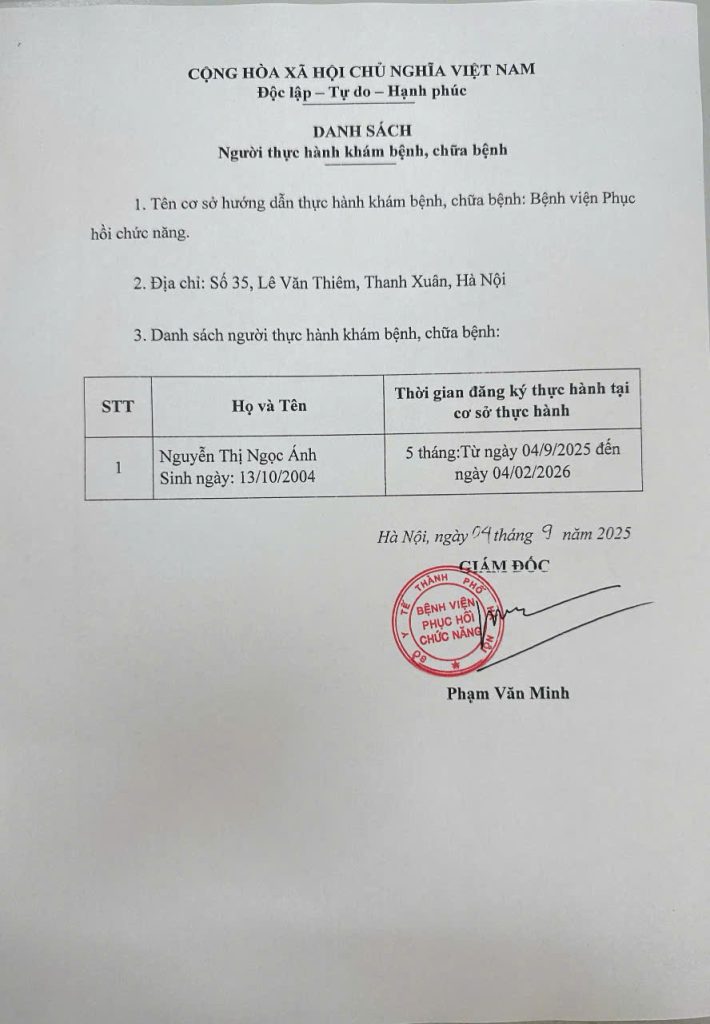 Danh sách người thực hiện khám bệnh, chữa bệnh