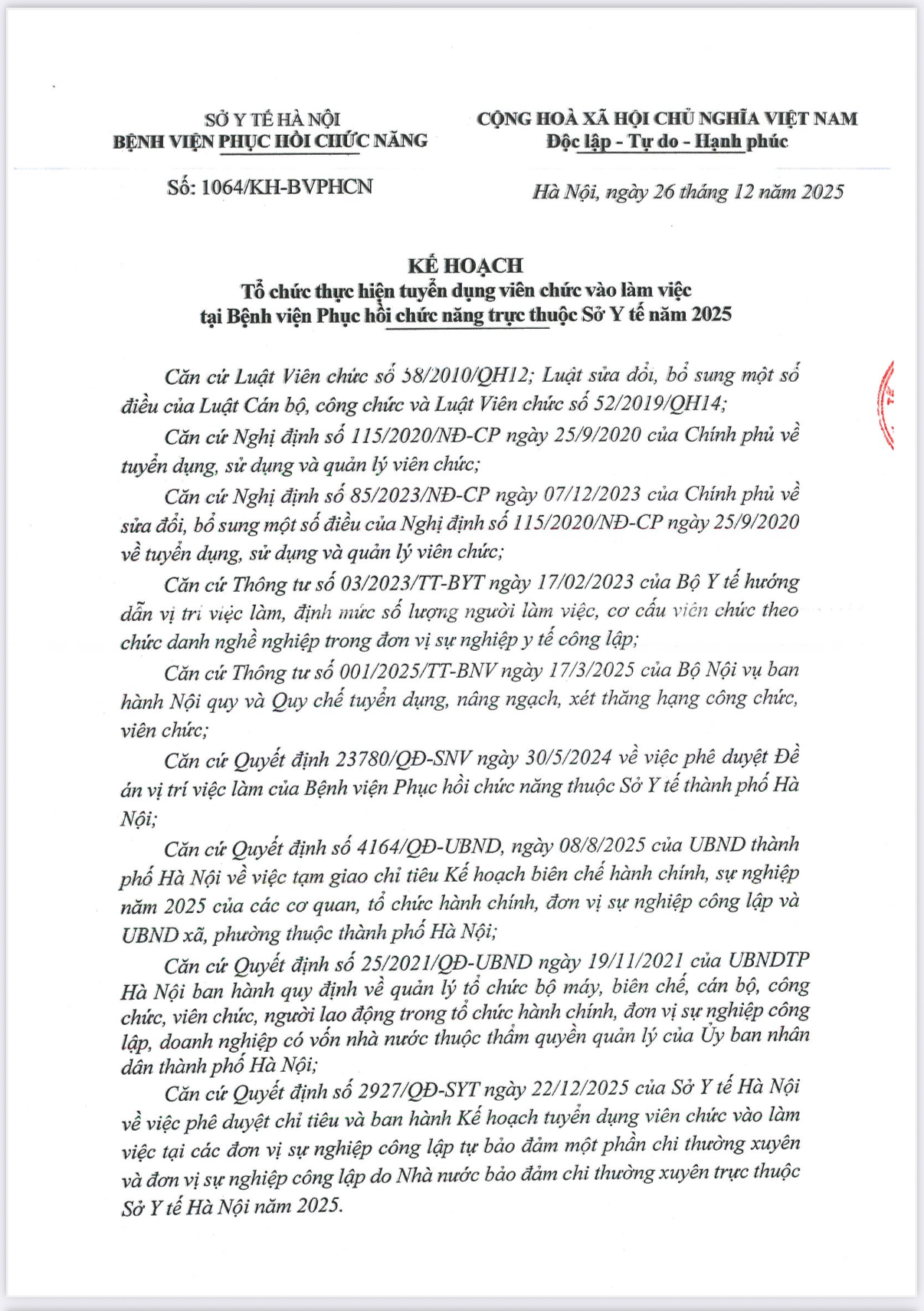 - Tên đơn vị: Bệnh viện Phục hồi chức năng