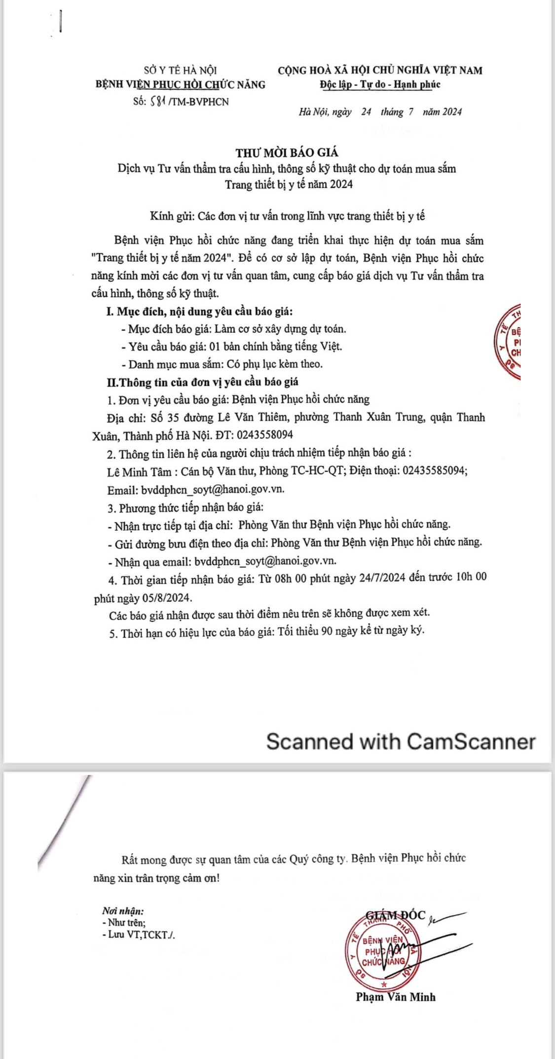 - THƯ MỜI QUAN TÂM DỊCH VỤ TƯ VẤN LẬP CẤU HÌNH, THÔNG SỐ KỸ THUẬT THUỘC DỰ TOÁN MUA SẮM TRANG THIẾT BỊ Y TẾ NĂM 2024 (14/08/2024)