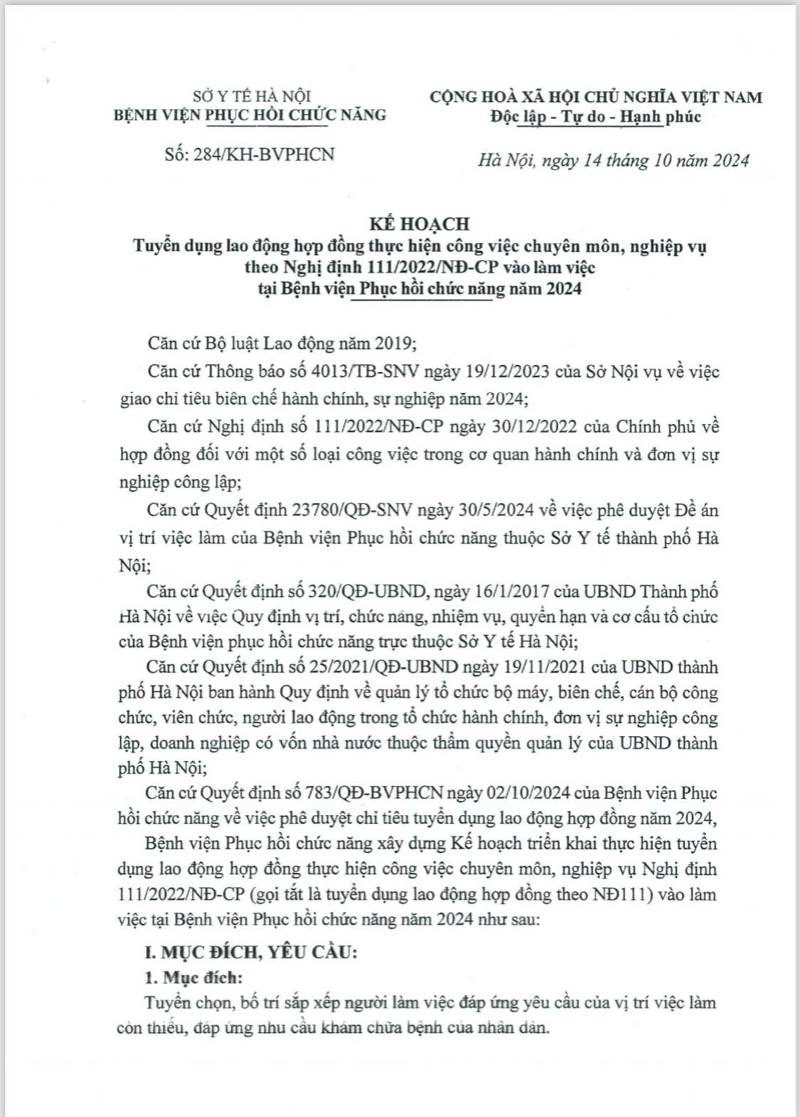 - THÔNG BÁO KẾT QUẢ TUYỂN DỤNG LAO ĐỘNG HỢP ĐỒNG THỰC HIỆN CÔNG VIỆC CHUYÊN MÔN, NGHIỆP VỤ THEO NGHỊ ĐỊNH 111/2022/NĐ-CP VÀO LÀM VIỆC TẠI BỆNH VIỆN PHỤC HỒI CHỨC NĂNG NĂM 2024 (12/11/2024)