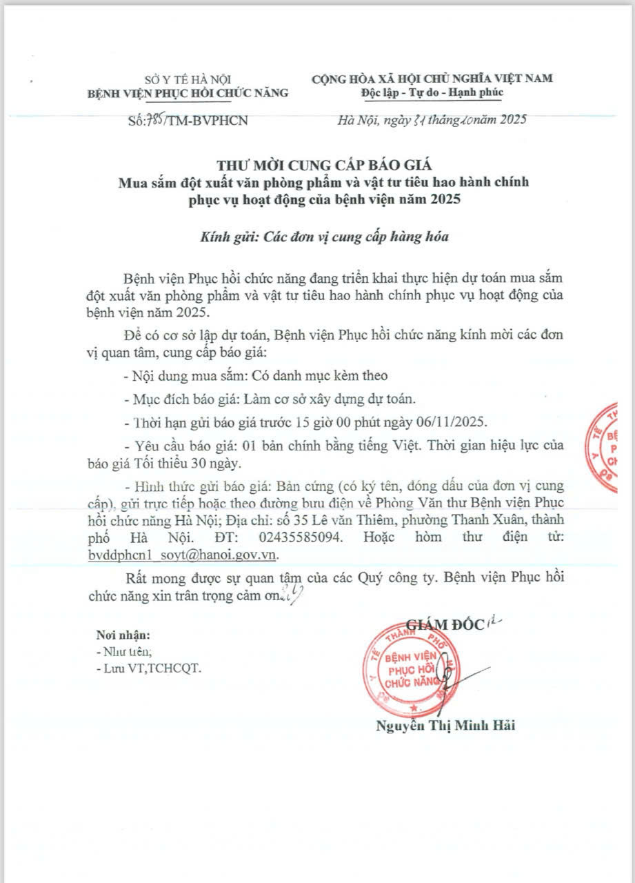 - QUYẾT ĐỊNH: Phê duyệt kết quả chỉ định đơn vị thực hiện gói thầu: Tư vấn lập cấu hình, thông số kỹ thuật thuộc Dự toán mua sắm Trang thiết bị năm 2025 (12/09/2025)