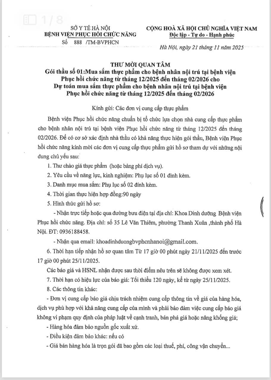 - Thư mời báo giá: Dịch vụ Tư vấn thẩm tra cấu hình, thông số kỹ thuật cho dự toán mua sắm Trang thiết bị y tế năm 2025 (31/07/2025)
