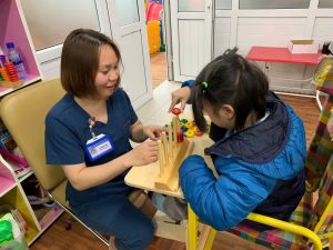 Ảnh- hoạt động của cô và trò trong một buổi can thiệp tại khoa Nhi- BVPHCN