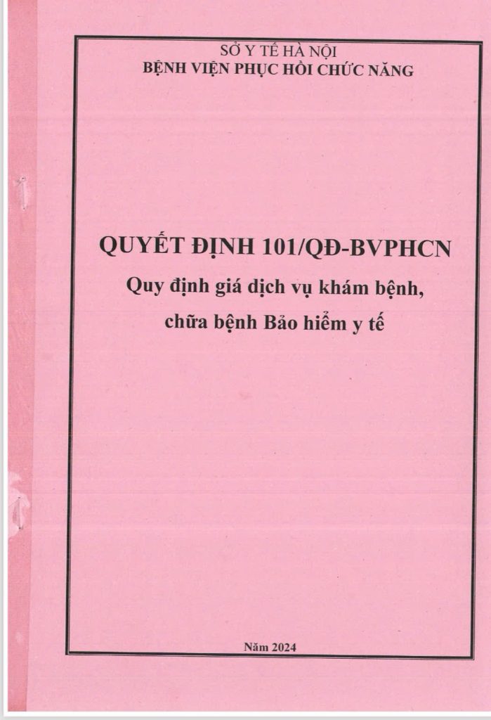 Trang chủ » Hướng dẫn bệnh nhân » QUYẾT ĐỊNH 101/QĐ-BVPHCN QUY ĐỊNH GIÁ DỊCH VỤ KHÁM BỆNH, CHỮA BỆNH BẢO HIỂM Y TẾ QUYẾT ĐỊNH 101/QĐ-BVPHCN QUY ĐỊNH GIÁ DỊCH VỤ KHÁM BỆNH, CHỮA BỆNH BẢO HIỂM Y TẾ Đăng vào ngày 12/04/2024 lúc: 11:45 782 lượt xem Chi tiết File đính kèm: QĐ 101 ban hành giá DV KCB BHYT Có thể bạn quan tâm: Lịch tuần 25/8 đến 31/8/2025 (26/08/2025) 🕊 Khám sức khỏe cho đối tượng chính sách nhân kỷ niệm 78 năm Ngày Thương binh – Liệt sĩ (25/07/2025) KẾ HOẠCH PHÒNG CHỐNG SỐT XUẤT HUYẾT NĂM 2025 (07/02/2025) THƯ MỜI QUAN TÂM GÓI THẦU SỮA CHỮA MÁY BIẾN ÁP VÀ THAY CÁP HẠ THẾ, BỘ CẦU CHÌ (14/03/2025) THƯ MỜI CHÀO CẤU HÌNH VÀ GIÁ Trang thiết bị y tế năm 2026 (12/09/2025) THƯ MỜI BÁO GIÁ DỰ TOÁN MUA SẮM CHỔI QUÉT, LAU NHÀ, TÚI NILON, GĂNG TAY VÀ ĐỒ GIA DỤNG BẰNG NHỰA KHÁC NĂM 2024 (25/07/2024) THƯ CẢM ƠN (19/11/2024) THÔNG BÁO: Kết quả lựa chọn nhà thầu Gói số 1: Gói thầu thuốc Generic Thuộc Kế hoạch lựa chọn nhà thầu cung cấp thuốc Thuộc dự toán mua sắm thuốc năm 2025 của Bệnh viện Phục hồi chức năng (07/08/2025) THÔNG BÁO : Lịch nghỉ Tết Nguyên Đán Ất Tỵ năm 2025 (22/01/2025) Bệnh viện Phục Hồi Chức Năng kết hợp cùng Hội chữ thập đỏ Việt Nam phát suất ăn sáng tại Bệnh viện (25/03/2025) Hô hấp bé (27/07/2023) Lịch tuần từ 24/6 đến 30/6/2024 (24/06/2024) QUYẾT ĐỊNH CÔNG BỐ ÁP DỤNG VÀ CÔNG KHAI GIÁ CỤ THỂ DỊCH VỤ KHÁM, CHỮA BỆNH SỬ DỤNG DỊCH VỤ DO QUỸ BẢO HIỂM Y TẾ THANH TOÁN, GIÁ CỤ THỂ DỊCH VỤ KHÁM BỆNH, CHỮA BỆNH DO NGÂN SÁCH NHÀ NƯỚC THANH TOÁN (10/02/2025) Lịch tuần từ 03/03 đến 09/03/2025 (28/02/2025) NHỮNG ĐIỀU CẦN BIẾT ĐỂ TRÁNH SANG CHẤN KHI TẬP YOGA (19/03/2024)