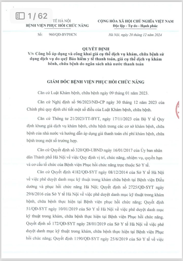 QUYẾT ĐỊNH CÔNG BỐ ÁP DỤNG VÀ CÔNG KHAI GIÁ CỤ THỂ DỊCH VỤ KHÁM, CHỮA BỆNH SỬ DỤNG DỊCH VỤ DO QUỸ BẢO HIỂM Y TẾ THANH TOÁN, GIÁ CỤ THỂ DỊCH VỤ KHÁM BỆNH, CHỮA BỆNH DO NGÂN SÁCH NHÀ NƯỚC THANH TOÁN