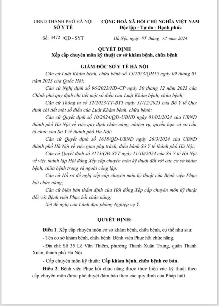 Trang chủ » Tin tức » Thông tin chuyên môn » QUYẾT ĐỊNH XẾP CẤP CHUYÊN MÔN KỸ THUẬT CƠ SỞ KHÁM BỆNH, CHỮA BỆNH QUYẾT ĐỊNH XẾP CẤP CHUYÊN MÔN KỸ THUẬT CƠ SỞ KHÁM BỆNH, CHỮA BỆNH Đăng vào ngày 08/01/2025 lúc: 16:24 1162 lượt xem Chi tiết File đính kèm: BV PHCN Có thể bạn quan tâm: QUYẾT ĐỊNH: Phê duyệt kết quả chỉ định đơn vị thực hiện gói thầu Tư vấn thẩm tra cấu hình, thông số kỹ thuật thuộc dự toán mua sắm Trang thiết bị y tế năm 2025 (12/09/2025) Lịch tuần từ 17/02 từ 23/02/2025 (18/02/2025) YÊU CẦU BÁO GIÁ GÓI THẦU THUỘC DỰ TOÁN MUA SẮM TRANG THIẾT BỊ Y TẾ NĂM 2024 (05/11/2024) THƯ MỜI THAM GIA GÓI THẦU MUA SẮM KIM CHÂM CỨU (11/11/2024) Tấm Lòng Nhân Ái Nhân Ngày Quốc Tế Thiếu Nhi: Trao Yêu Thương Tới Trẻ Em Khuyết Tật Tại Làng Hòa Bình Thanh Xuân (28/05/2025) Lịch tuần từ 07/04/2025 đến 13/04/2025 (10/04/2025) Hoạt động của LHBTX (05/10/2023) THÔNG BÁO TUYỂN SINH LỚP ÂM NGỮ TRỊ LIỆU KHOÁ 2 (26/09/2023) THƯ MỜI CHÀO GIÁ (11/03/2024) Bảo vệ và hỗ trợ trẻ tương tác lành mạnh, sáng tạo trên môi trường mạng (12/11/2024) THƯ MỜI YÊU CẦU TƯ VẤN KHẢO SÁT LẬP DỰ TOÁN MUA SẮM PHẦN MỀM BỆNH ÁN ĐIỆN TỬ – THIẾT BỊ HẠ TẦNG CÔNG NGHỆ THÔNG TIN (17/04/2025) THƯ MỜI BÁO GIÁ DỊCH VỤ TƯ VẤN THẨM ĐỊNH E-HSMT, THẨM ĐỊNH KẾT QUẢ ĐÁNH GIÁ E-HSDT DỰ TOÁN MUA SẮM VĂN PHÒNG PHẨM NĂM 2024 (11/06/2024) MẠNH THƯỜNG QUÂN VÀ SINH VIÊN TÌNH NGUYỆN MANG YÊU THƯƠNG ĐẾN BỆNH NHI VÀ LÀNG HÒA BÌNH THANH XUÂN (08/08/2025) YÊU CẦU BÁO GIÁ DỰ TOÁN MUA SẮM THỰC PHẨM NĂM 2024 CHO CÁC CHÁU KHUYẾT TẬT LÀNG HÒA BÌNH THANH XUÂN (06/12/2024) Ngày Môi trường Thế giới 2025 (11/06/2025)