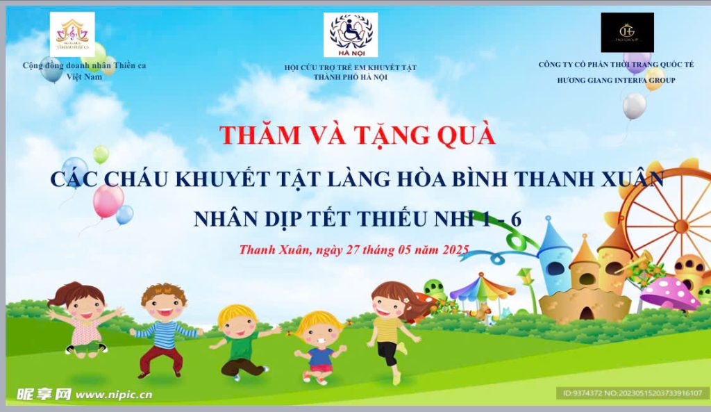 Hòa chung không khí vui tươi của Ngày Quốc tế Thiếu nhi, Hội Cứu trợ Trẻ em Khuyết tật Thành phố Hà Nội phối hợp cùng Cộng đồng Doanh nhân Thiền ca Việt Nam và Công ty Cổ phần Thời trang Quốc tế Hương Giang Interfa Group đã tổ chức chuyến thăm và trao quà cho các em nhỏ tại Làng Hòa Bình Thanh Xuân – thuộc Bệnh viện Phục hồi chức năng Hà Nội.