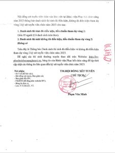 Hội đồng xét tuyển viên chức vào làm việc tại Bệnh viện Phục hồi chức năng năm 2023 thông báo danh sách thí sinh đủ điều kiện, không đủ điều kiện tham dự vòng 2 kỳ xét tuyển viên chức năm 2023 như sau: