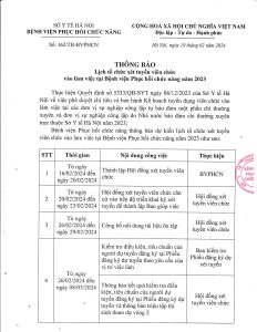 THÔNG BÁO LỊCH TỔ CHỨC XÉT TUYỂN VIÊN CHỨC VÀO LÀM VIỆC TẠI BỆNH VIỆN PHỤC HỒI CHỨC NĂNG NĂM 2023