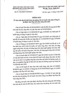 Hội đồng xét tuyển viên chức Bệnh viện Phục hồi chức năng năm 2023 thông báo triệu tập thí sinh đủ điều kiện, tiêu chuẩn tham dự phỏng vấn xét tuyện viên chức (vòng 2) đến tập trung nghe phổ biến một số nội dung có liên quan và nội dung, quy chế tham dự thi, cụ thể như sau: