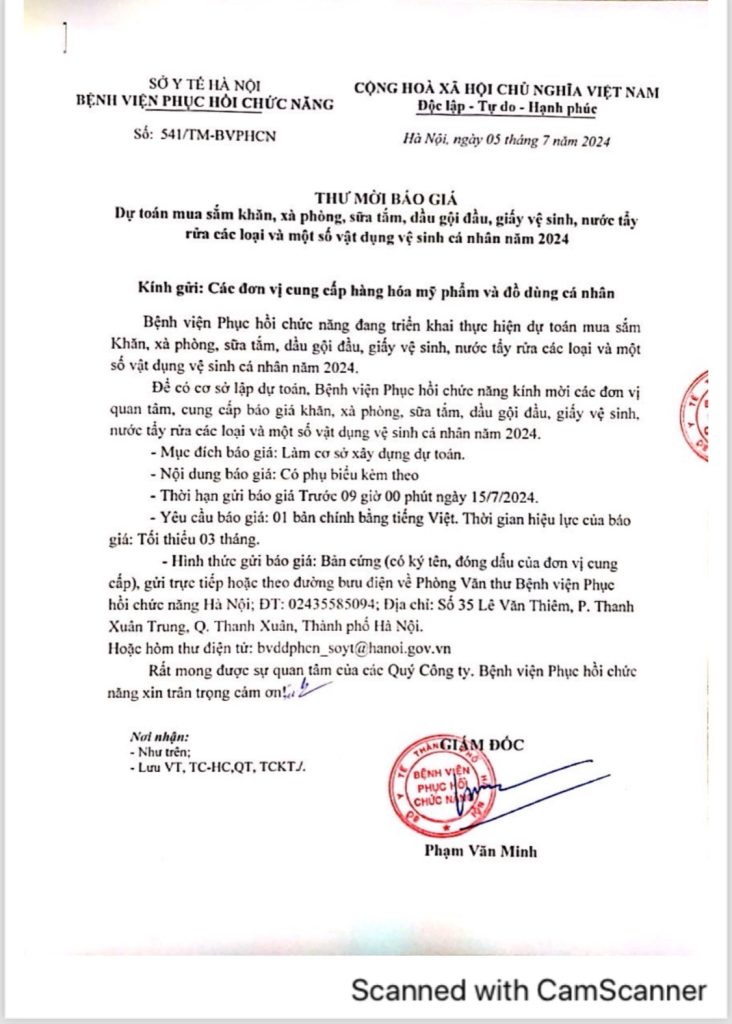 THƯ MỜI BÁO GIÁ DỰ TOÁN MUA SẮM KHĂM, XÀ PHÒNG, SỮA TẮM, DẦU GỘI ĐẦU, GIẤY VỆ SINH, NƯỚC TẨY RỬA CÁC LOẠI VÀ MỘT SỐ VẬT DỤNG VỆ SINH CÁ NHÂN NĂM 2024