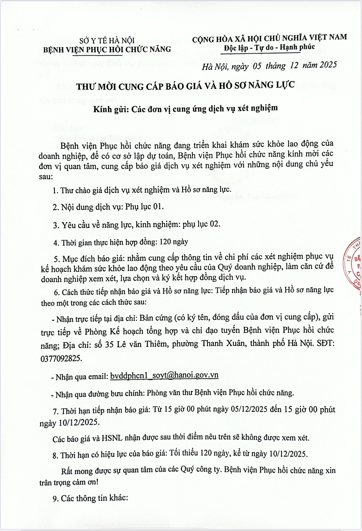 Bệnh viện phục hồi chức năng Hà Nội đang triển khai thực hiện dự toán Máy tính, Máy in năm 2024, với nội dung sau: