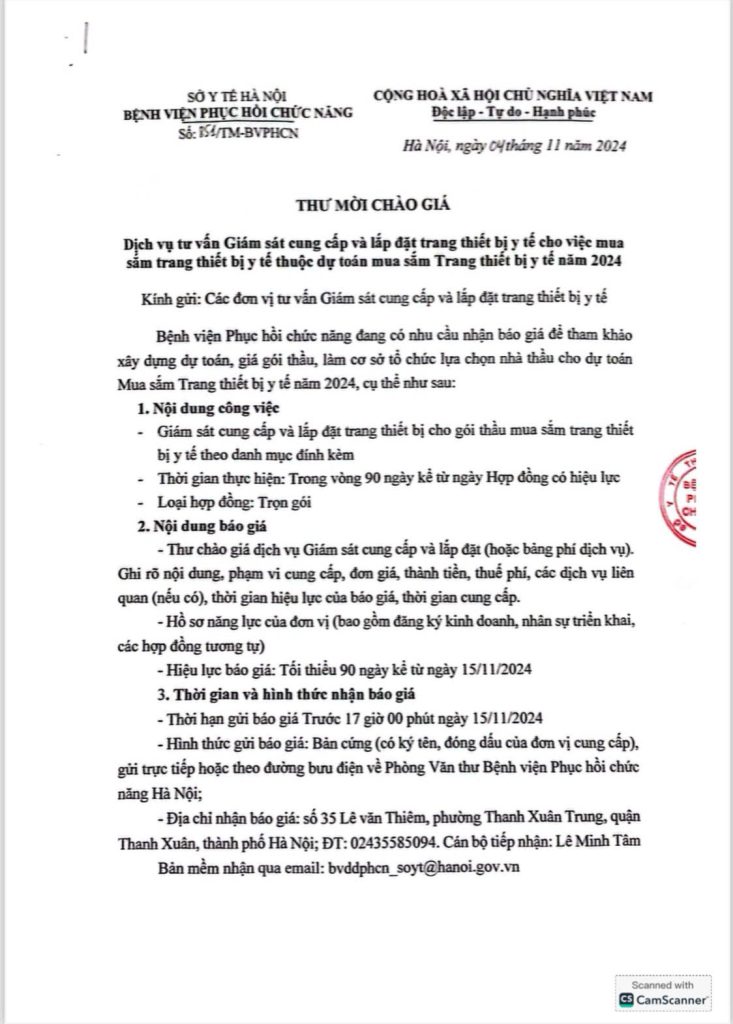 THƯ MỜI CHÀO GIÁ DỊCH VỤ TƯ VẤN GIÁM SÁT CUNG CẤP VÀ LẮP ĐẶT TRANG THIẾT BỊ Y TẾ CHO VIỆC MUA SẮM TRANG THIẾT BỊ Y TẾ THUỘC DỰ TOÁN MUA SẮM TRANG THIẾT BỊ Y TẾ NĂM 2024