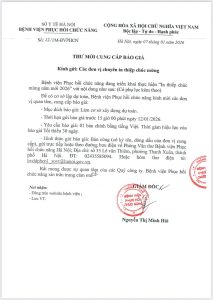 Trang chủ » Tin tức » THƯ MỜI CUNG CẤP BÁO GIÁ THƯ MỜI CUNG CẤP BÁO GIÁ Đăng vào ngày 07/01/2026 lúc: 14:22 33 lượt xem Chi tiết thư mời: so 12.TM-BVPHCN TM thiếp 2026 Có thể bạn quan tâm: THƯ CẢM ƠN (19/11/2024) Bệnh sởi (22/11/2024) THƯ MỜI BÁO GIÁ DỰ TOÁN MUA SẮM MÁY TÍNH, MÁY IN NĂM 2024 (17/06/2024) THƯ MỜI BÁO GIÁ VÀ HỒ SƠ NĂNG LỰC DỊCH VỤ TƯ VẤN LẬP E-HSMT, BÁO CÁO ĐÁNH GIÁ E-HSDT CHO VIỆC MUA SẮM THỰC PHẨM NĂM 2025 CHO CÁC CHÁU KHUYẾT TẬT LÀNG HÒA BÌNH THANH XUÂN (17/12/2024) THÔNG BÁO: Kết quả chỉ định đơn vị cung cấp Gói thầu Mua sắm Dịch vụ kiểm tra và cài đặt phần mềm Dicom Modality Worklist cho máy X-quang (26/12/2025) YÊU CẦU BÁO GIÁ GÓI THẦU MUA SẮM BỔ SUNG VẬT TƯ Y TẾ PHỤC VỤ CÔNG TÁC CHUYÊN MÔN (06/06/2024) Yêu cầu báo giá gói thầu Mua hóa chất Cloramin B (09/05/2025) Lịch tuần từ 19/5 đến 25/5/2025 (21/05/2025) Lịch tuần từ 05/8 đến 11/8/2024 (05/08/2024) THƯ MỜI BÁO GIÁ VÀ HỒ SƠ NĂNG LỰC DỊCH VỤ TƯ VẤN THẨM ĐỊNH E-HSMT, THẨM ĐỊNH KẾT QUẢ LỰA CHỌN NHÀ THẦU CHO VIỆC MUA SẮM THỰC PHẨM NĂM 2025 CHO CÁC CHÁU KHUYẾT TẬT LÀNG TRẺ HÒA BÌNH THANH XUÂN (17/12/2024) HƯỞNG ỨNG NGÀY THẾ GIỚI PHÒNG, CHỐNG TỰ TỬ (10/09/2025) Lịch tuần từ 10/11 đến 16/11/2025 (10/11/2025) Lịch tuần từ 26/05 đến 01/06/2025 (27/05/2025) Mang Tết Thiếu nhi đến sớm cho bệnh nhi tại Bệnh viện Phục Hồi Chức Năng (09/06/2025) THƯ MỜI QUAN TÂM: Tham gia gói thầu: In, photo các biểu mâu chuyên môn, tài liệu 2025 (09/09/2025)