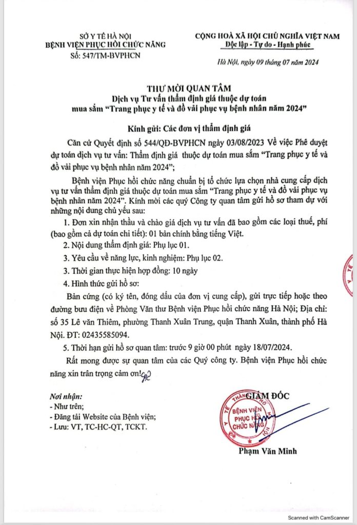 THƯ MỜI QUAN TÂM DỊCH VỤ TƯ VẤN THẨM ĐỊNH GIÁ THUỘC DỰ TOÁN MUA SẮM “TRANG PHỤC Y TẾ VÀ ĐỒ VẢI PHỤC VỤ BỆNH NHÂN NĂM 2024”