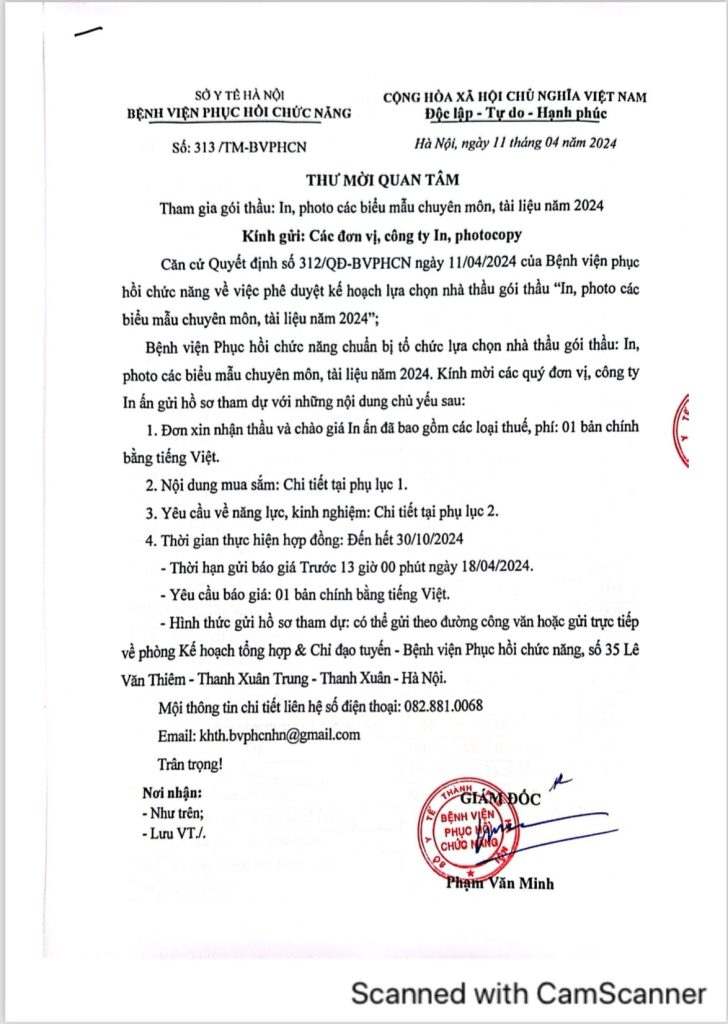 THƯ MỜI QUAN TÂM: Tham gia gói thầu In, photo các biểu mẫu chuyên môn, tài liệu năm 2024