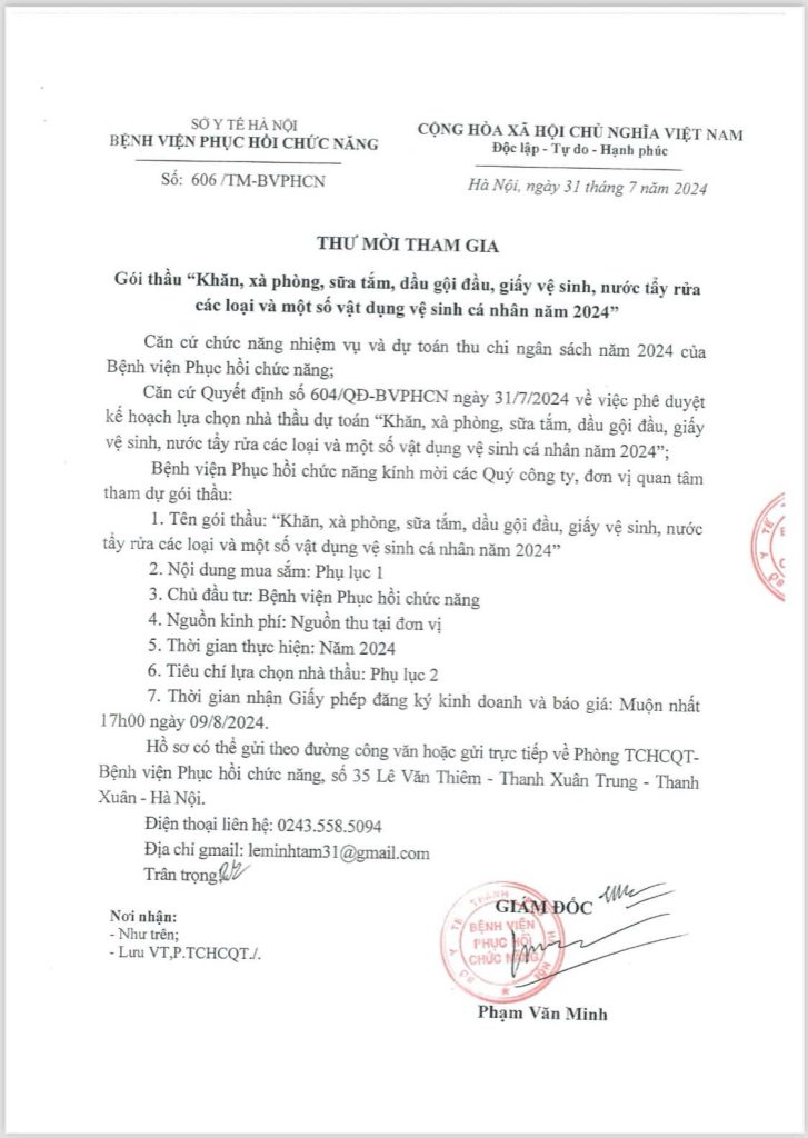 Bệnh viện Phuc hồi chức năng kính mời các Quý công ty, đơn vị quan tâm tham dự gói thầu: