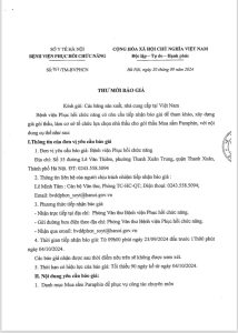 YÊU CẦU BÁO GIÁ GÓI THẦU MUA SẮM HÓA CHẤT NGOẠI KIỂM CHẤT LƯỢNG XÉT NGHIÊM HUYẾT HỌC, SINH HÓA, NƯỚC TIỂU NĂM 2024-2025