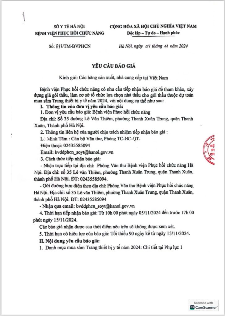 Trang chủ » Tin tức » Thông tin mua sắm - đầu tư » YÊU CẦU BÁO GIÁ GÓI THẦU THUỘC DỰ TOÁN MUA SẮM TRANG THIẾT BỊ Y TẾ NĂM 2024 YÊU CẦU BÁO GIÁ GÓI THẦU THUỘC DỰ TOÁN MUA SẮM TRANG THIẾT BỊ Y TẾ NĂM 2024 Đăng vào ngày 05/11/2024 lúc: 09:02 1398 lượt xem CHI TIẾT FILE ĐÍNH KÈM:TM số 848. ngày 04.11.2024 Có thể bạn quan tâm: KẾ HOẠCH PHÒNG, CHỐNG DỊCH THƯỜNG XUYÊN NĂM 2025 (07/02/2025) BỆNH VIỆN PHỤC HỒI CHỨC NĂNG TỔ CHỨC GẶP MẶP ĐẦU XUÂN 2024 (16/02/2024) Kỷ niệm 79 năm Ngày truyền thống phòng, chống thiên tai Việt Nam – 22/5/2025 và Tuần lễ Quốc gia phòng, chống thiên tai năm 2025 từ 15-22/5/2025 (22/05/2025) Lịch tuần từ 21/04 đến 27/04/2025 (21/04/2025) BÁO CÁO CA BỆNH VIÊM NÃO TỰ MIỄN (Autoimmune Encephalitis – AE) (19/06/2025) BỆNH VIỆN PHỤC HỒI CHỨC NĂNG THAM DỰ HỘI THI “CÁN BỘ CÔNG CHỨC, VIÊN CHỨC LAO ĐỘNG NGÀNH Y TẾ THỦ ĐÔ THANH LỊCH – TẬN TÂM – CHUYÊN NGHIỆP” (17/02/2025) THƯ MỜI QUAN TÂM DỊCH VỤ TƯ VẤN LẬP E-HSMT, BÁO CÁO ĐÁNH GIÁ E-HSDT VIỆC MUA SẮM “TRANG PHỤC Y TẾ VÀ ĐỒ VẢI PHỤC VỤ BỆNH NHÂN NĂM 2025” (31/10/2025) Lịch tuần từ 09/06 đến 15/06/2025 (09/06/2025) Hiệu quả rõ rệt của phương pháp tiêm Botulinum toxin A lên điều trị co cứng cơ cho trẻ Bại não (07/10/2024) THÔNG BÁO VỀ VIỆC NGHỈ LỄ QUỐC KHÁNH 02/09/2024 (29/08/2024) Đảm bảo vệ sinh An toàn thực phẩm phòng tiêu chảy cấp trong dịp Tết Nguyên đán và Lễ hội Xuân 2025 (15/01/2025) Lịch tuần từ 20/5 đến 26/5/2024 (20/05/2024) THƯ MỜI QUAN TÂM: Tham gia gói thầu “Vật tư tiêu hao hành chính năm 2025” (17/11/2025) Sự cần thiết của đề án “phát triển ứng dụng dữ liệu về dân cư, định danh và xác thực điện tử phục vụ chuyển đổi số quốc gia giai đoạn 2022-2025, tầm nhìn đến năm 2030” (18/10/2024) Ban giám đốc (12/03/2024)